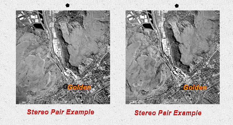 Nine by nine-inch contact prints are typically provided as stereo pairs. "Old Delft Scanning Stereoscopes" are provided in our research room for viewing of these stereo pairs. Once the photographs are aligned, these stereoscopes allow 3D viewing of the contact prints in either 1.5 or 4.5 times magnifications. The field of view can be moved in either the X or Y direction to scan the photographs without shifting the stereoscope or prints. Stereo viewing may also be accomplished without the aid of any specialized optical viewing equipment. As you gaze at the two photos, cross your eyes very slightly until you see three images. As the left and right images converge into the center image, the three-dimensional effect should become apparent.